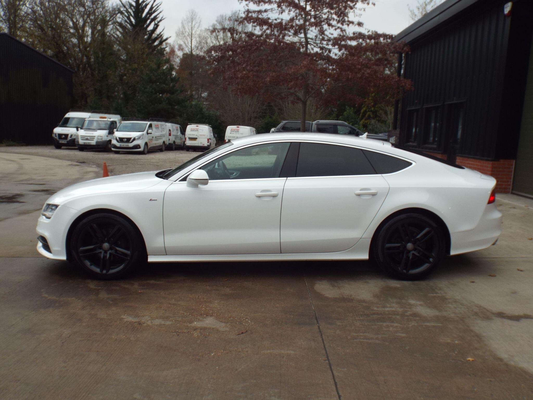 **NATIONWIDE DELIVERY AVAILABLE**This is a totally immaculate 2013/13 Audi A7 3.0TDI V6 S Line Sportback which comes with a full service history (Just serviced too) a full years MOT and an excellent spec. Just 2 owners from new, always garaged and meticulously cared for. Finished in white the paintwork is excellent and the vehicle has a superb shine to it from all over. The black leather interior is also in excellent condition with no adverse wear at all. Great spec including: E/Windows, E/Folding Mirrors, Remote C/L (2xKeys), Unmarked Anthracite Grey 19" alloy wheels, Pirelli Tyres all round, Front and rear parking sensors, Auto Xenon headlights, LED DRLs, Front and rear fog lights, Electric tailgate, Full black leather interior, Electric seats (Drivers memory), Heated seats, AM/FM/DAB Radio, Aux/USB Input, Bluetooth connectivity, SAT-NAV, Dual-zone climate control with Air conditioning, Multi-function steering wheel, Cruise control, ABS/PAS/DSC, Fully fitted mats plus loads more. This is a really lovely example, low mileage, low owners and very well maintained. We offer excellent finance rates, accept credit/debit cards and welcome part exchange too...