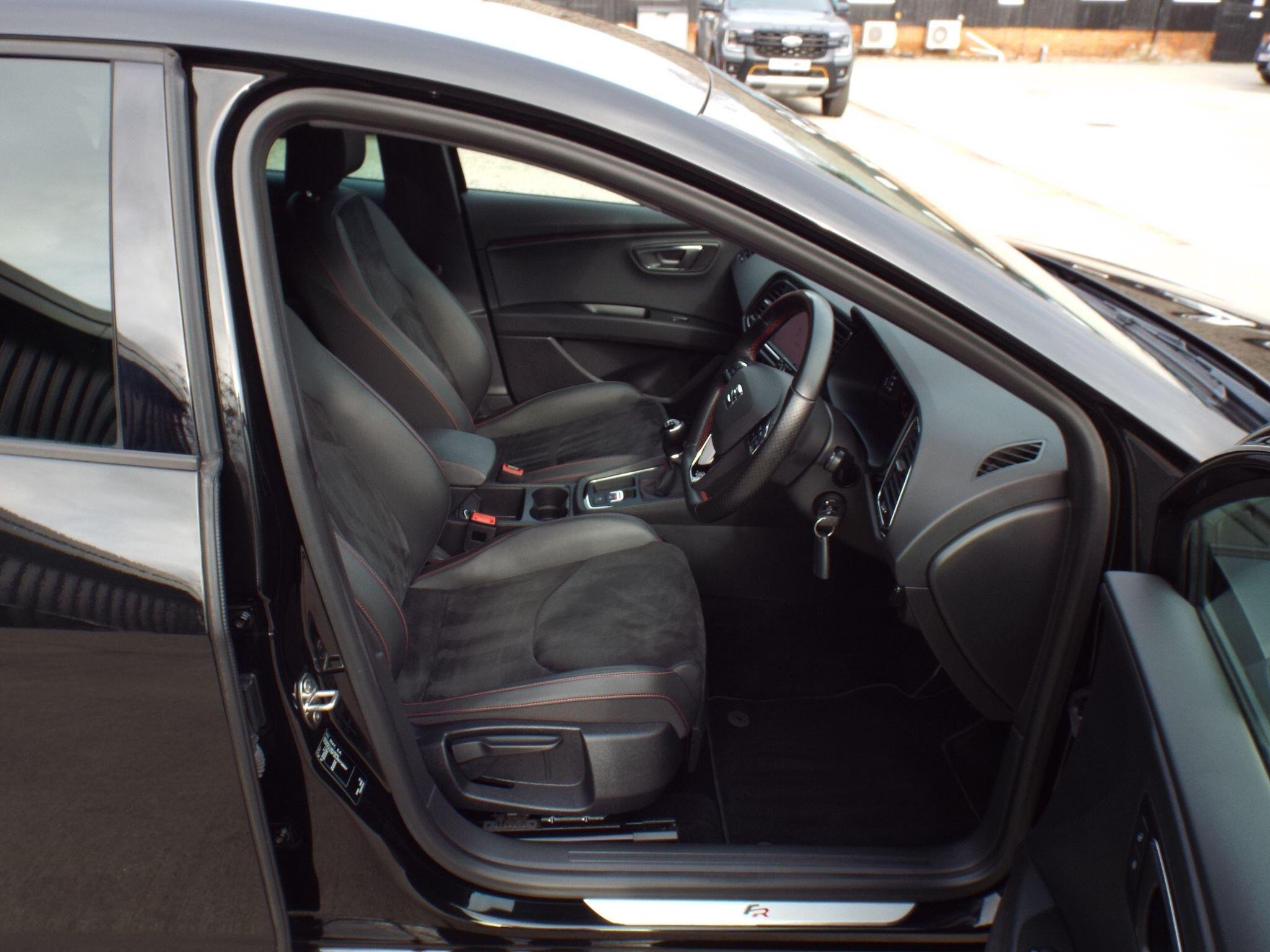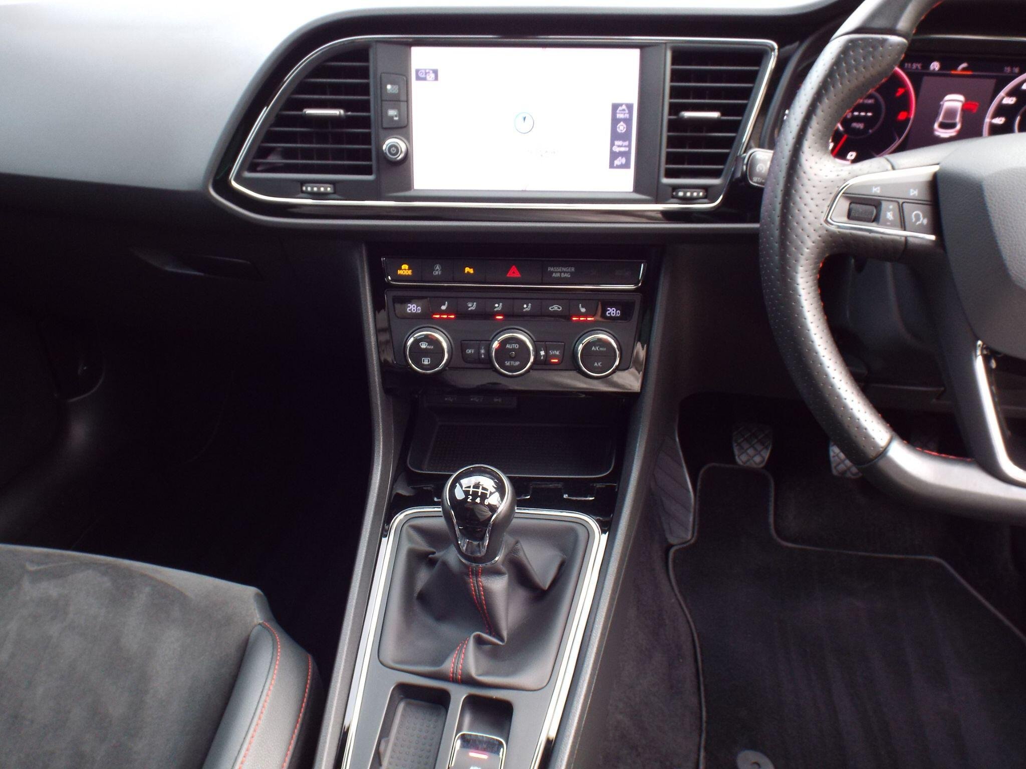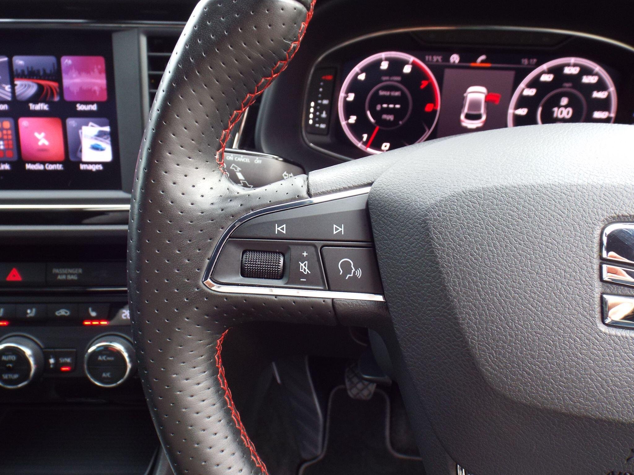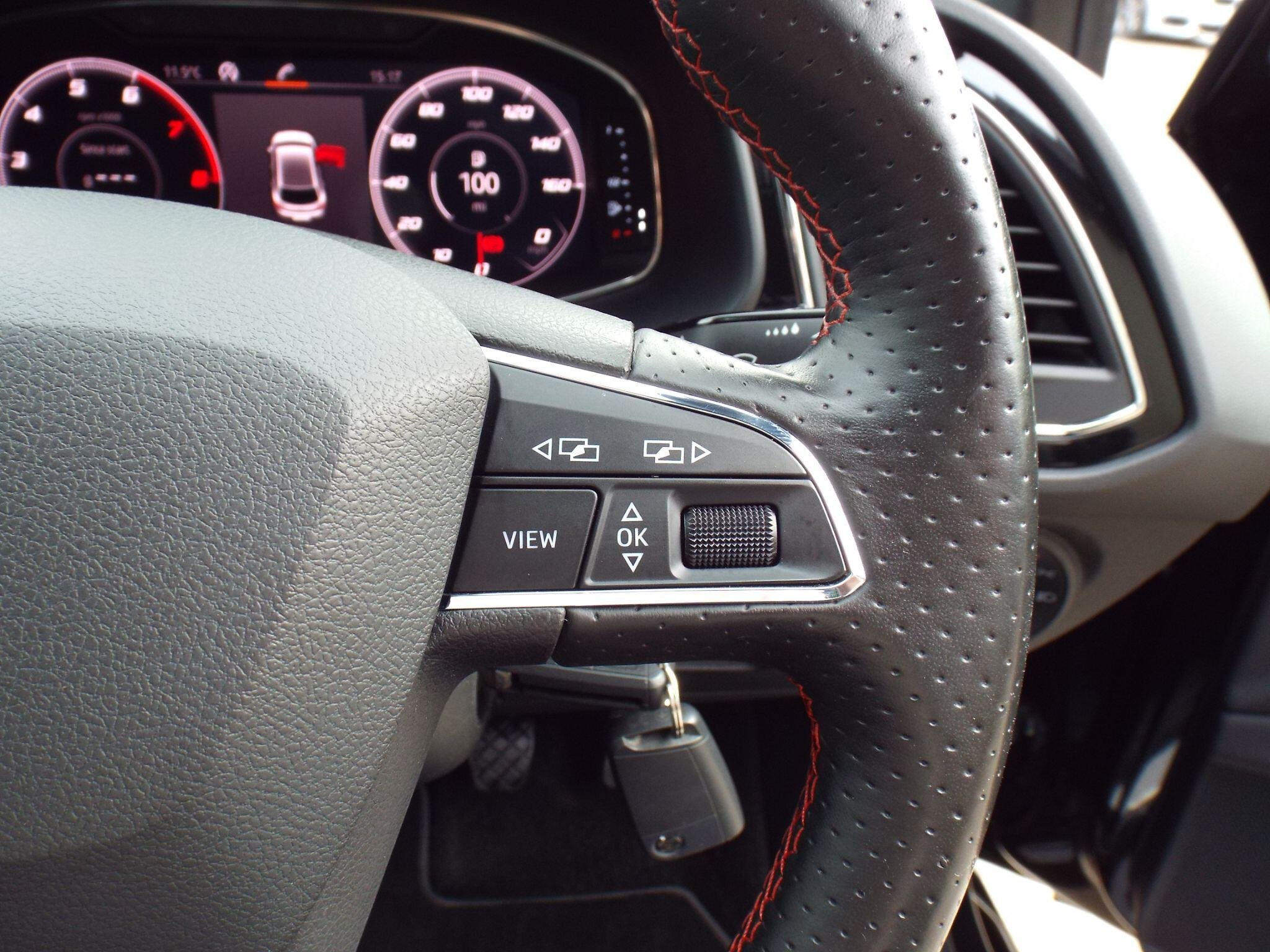 - Steering Wheel - Flat-Bottomed Perforated Leather with Red Stitching and FR Logo