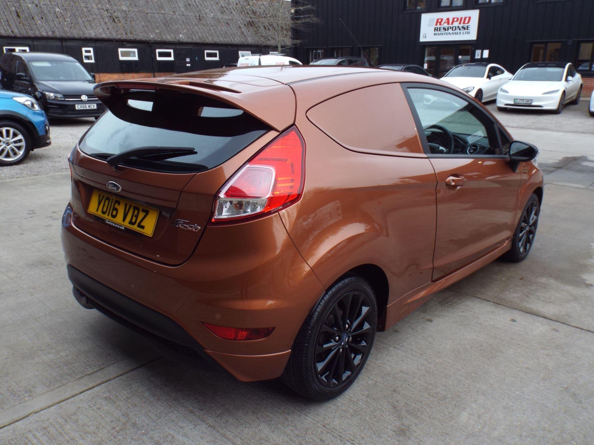 **NATIONWIDE DELIVERY AVAILABLE**This is a totally immaculate 2016/16 Ford Fiesta Van 1.5TDCi Sport Edition which comes with a Full FORD service history (10 services!) a full years MOT and an excellent spec. Finished in a Metallic Bronze colour this example looks stunning and stands out against all the white vans out there. If you are looking for a unique van then this is it. The paintwork is excellent and the vehicle has a deep glossy shine to it from all over. The black cloth interior is also in excellent condition with no adverse wear at all. This van has had a very easy life and it shows. Great spec: E/Windows, E/Folding Mirrors, Remote C/L (2xKeys), Unmarked Gloss Black alloy wheels, Rear parking sensors, Front and rear fog lights, Front and rear heated screens, AM/FM/DAB Radio, Aux/USB Input, Bluetooth connectivity, Climate control with Air conditioning, Multi-function steering wheel, Cruise control, ABS/PAS/DSC, Fully fitted mats plus loads more. This is a striking example which simply looks awesome! We accept credit/debit cards and welcome part exchange too...